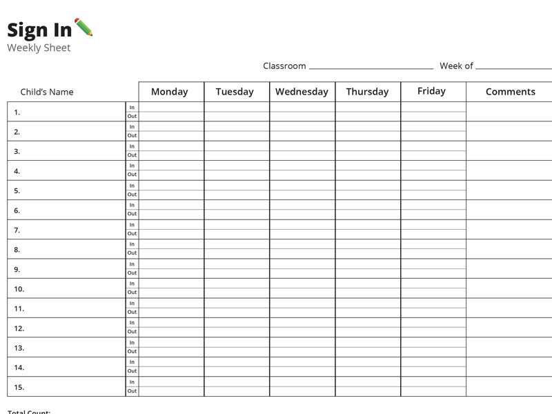 Children’s Church Sign In Sheet Template