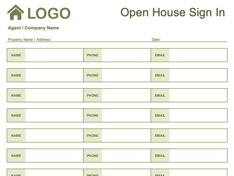 Open House Sign In Sheet Template
